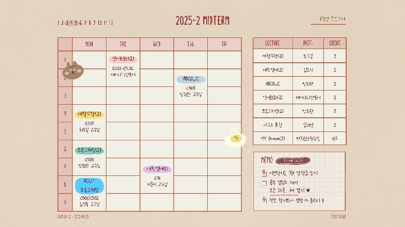 2025 중간고사 시간표