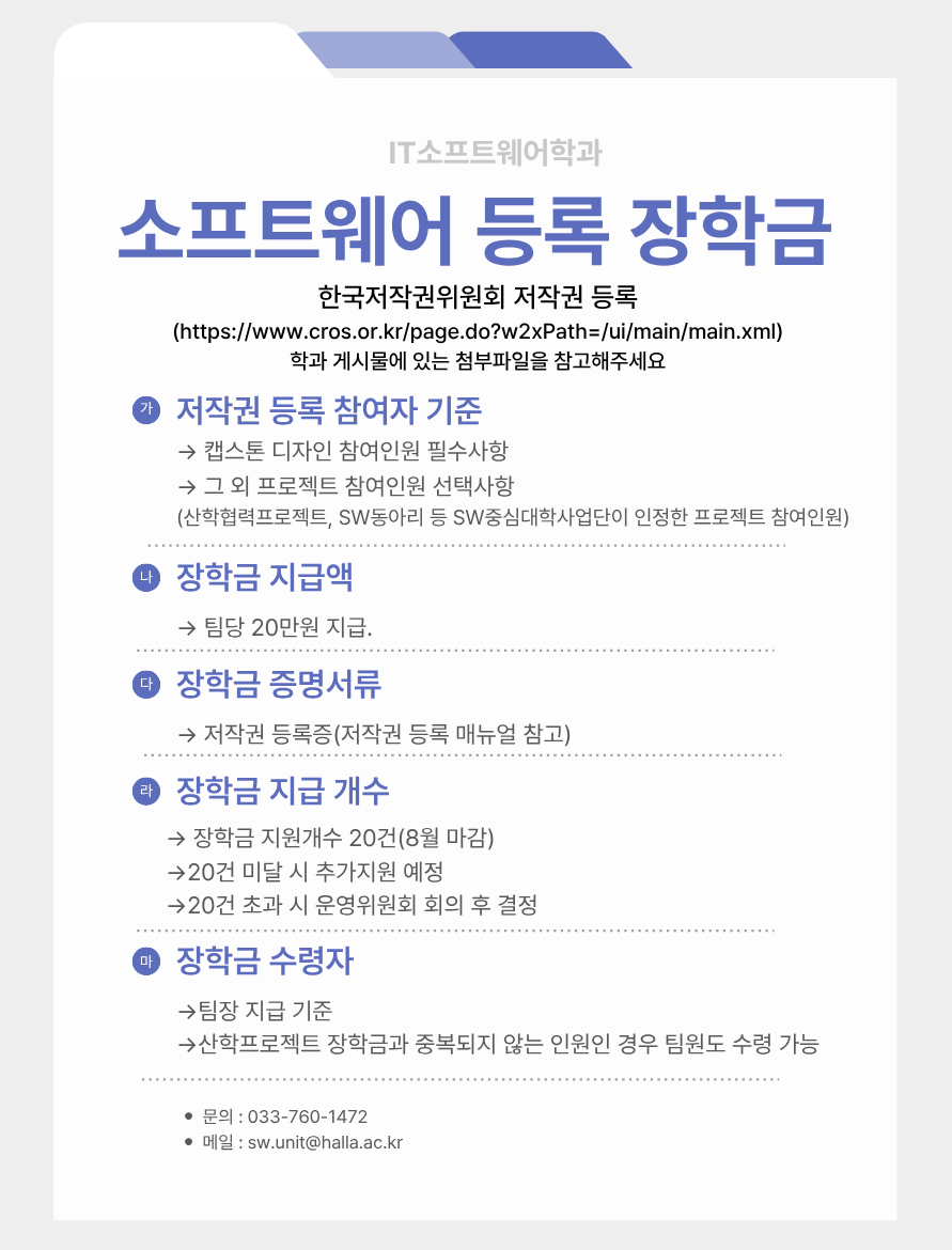 소프트웨어 등록 장학금